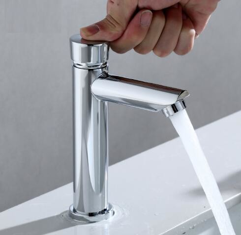 SUS304 Stainless Steel Single-Handle Single Cold Water Basin Tap Stylish Bathroom Faucets Self Closing In Chrome
