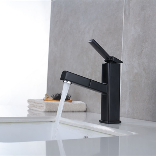 Brass Pull-Out 360°Swivel Single Hole Single Handle Basin Mixer In Matte Black Images |